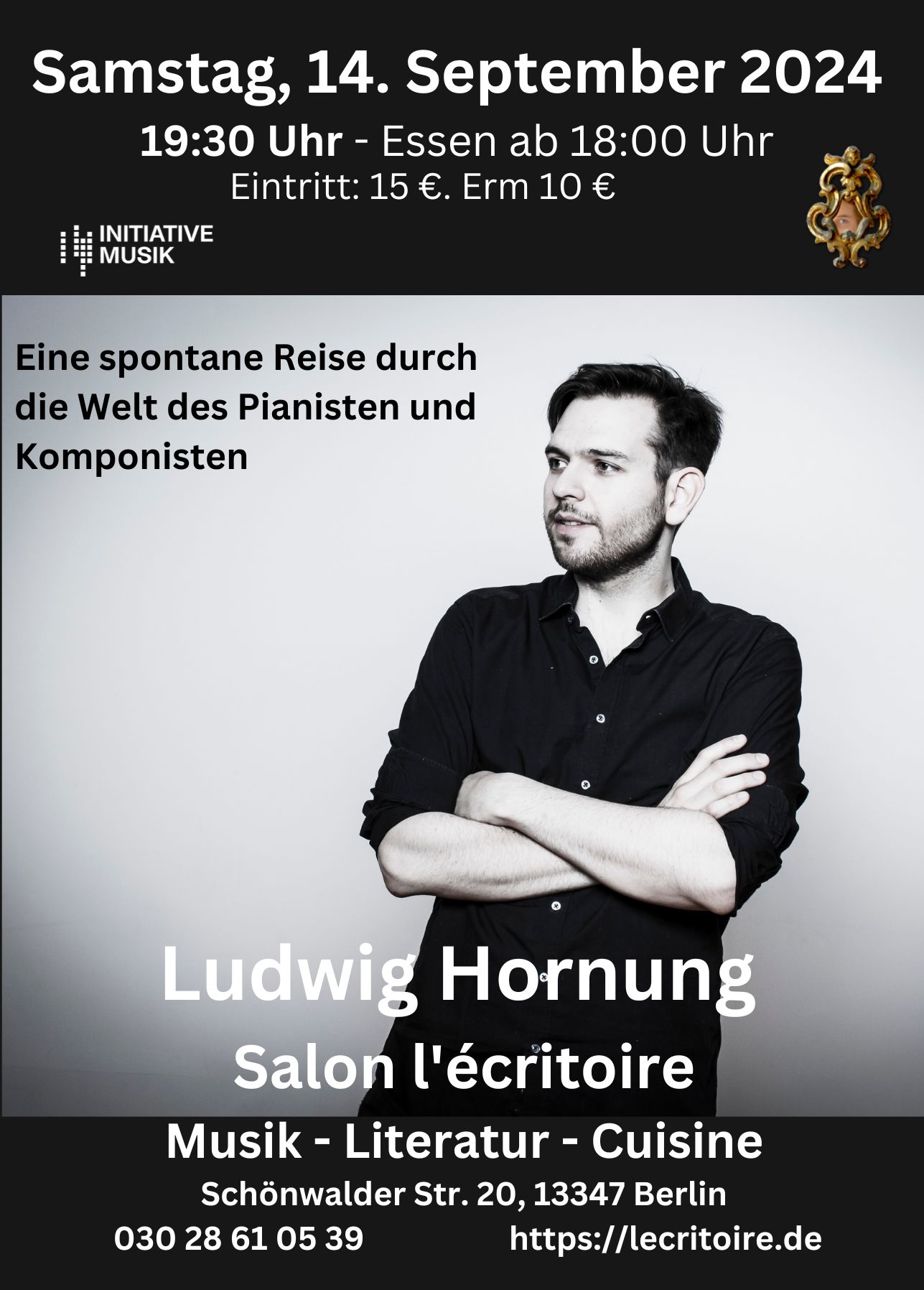 Ludwig Hornung wird heute Abend frei improvisieren und den Tenor eben dieser neuen CD und seines ganzen Schaffens mit uns teilen.